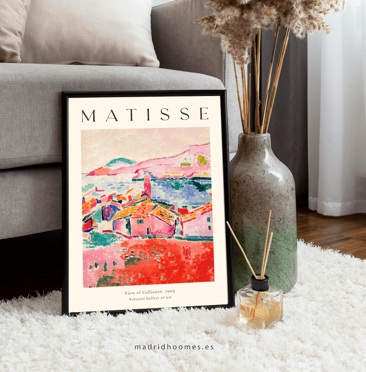 Lámina impresa de la obra de arte colorida reproducida por el artista francés Henri Matisse: Vista de Collioure 1905. ¡El arte en las paredes es una forma accesible y sencilla de renovar tu espacio al instante! Estas son impresiones artísticas de alta calidad hechas en papel de bellas artes de calidad de museo con un acabado premium que proporciona un brillo duradero para iluminar cualquier habitación.